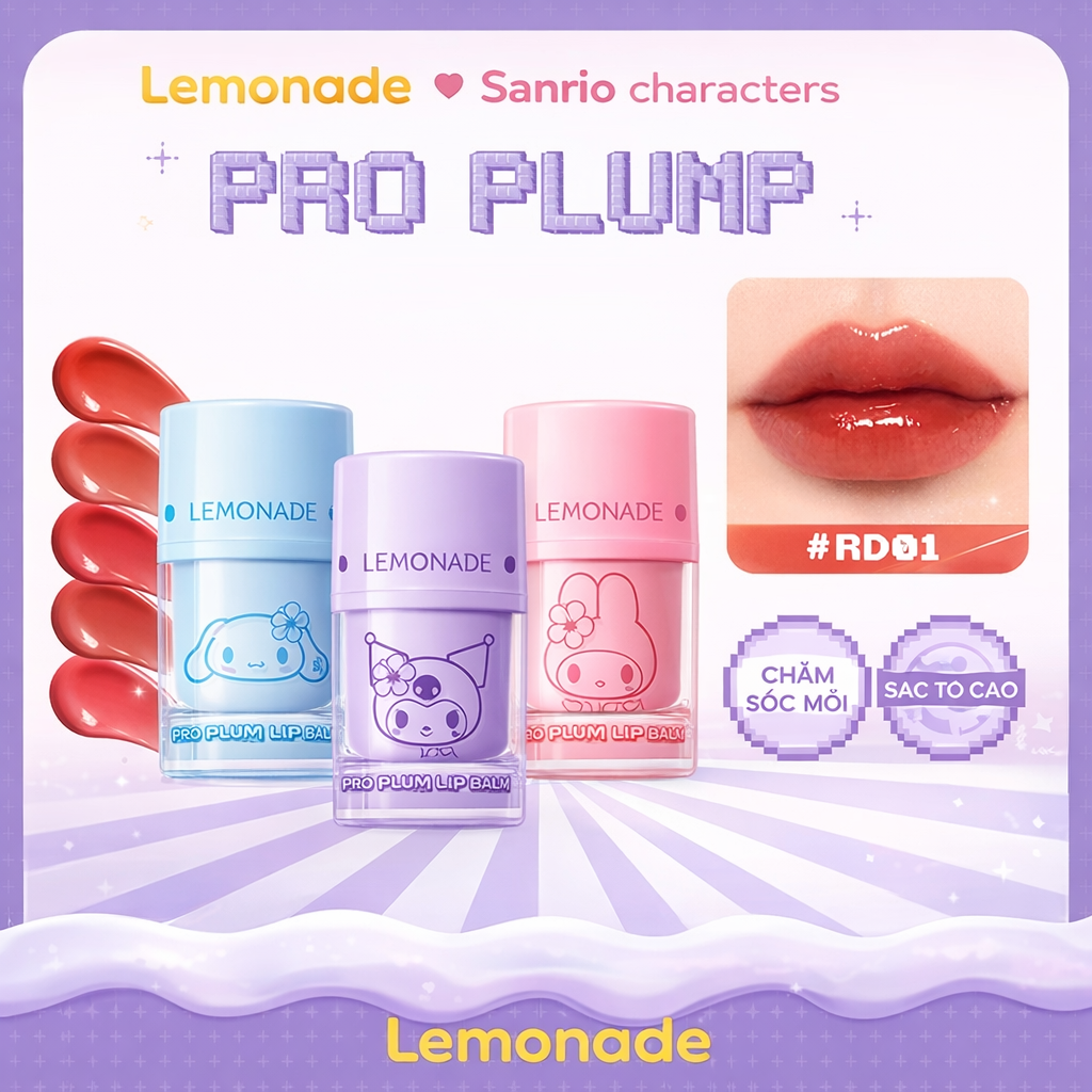 Lemonade kết hợp cùng các nhân vật Sanrio đình đám cho ra mắt dòng PRO PLUMP Lip Balm với thiết kế pastel đáng yêu, vừa dưỡng môi vừa giúp đôi môi trông đầy đặn, bóng khỏe tự nhiên.